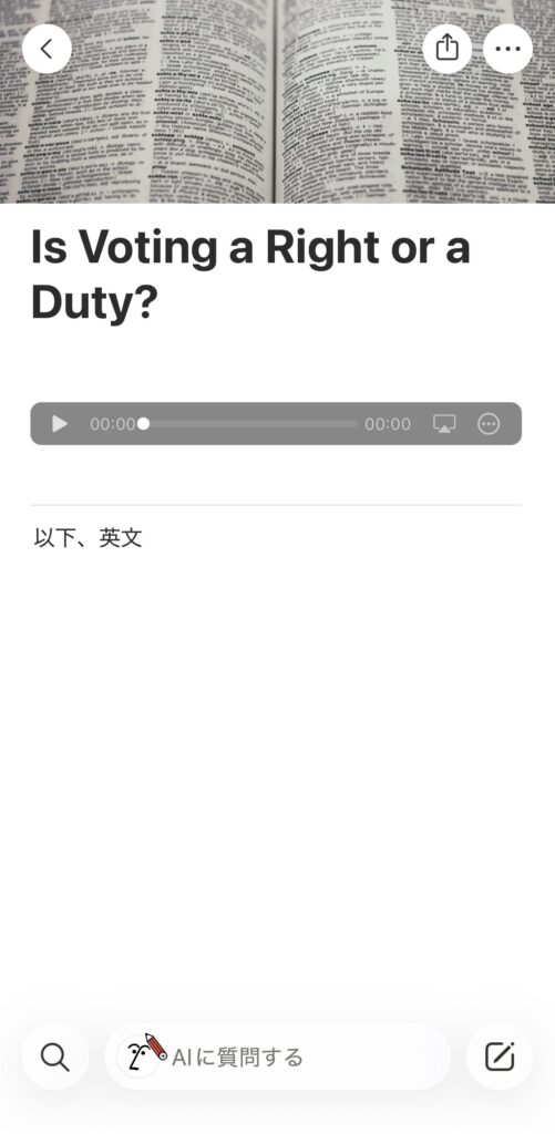 Notionを英語学習ノートにする最大のメリットは、テキストと一緒に音声ファイルを埋め込めること。